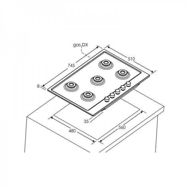 CANDY CHW74WX Piano cottura a gas 5 fuochi INOX